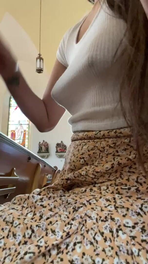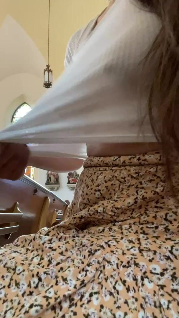 Exposed in Public: Flashing during church *sound on to hear priest | Porn GIF Video