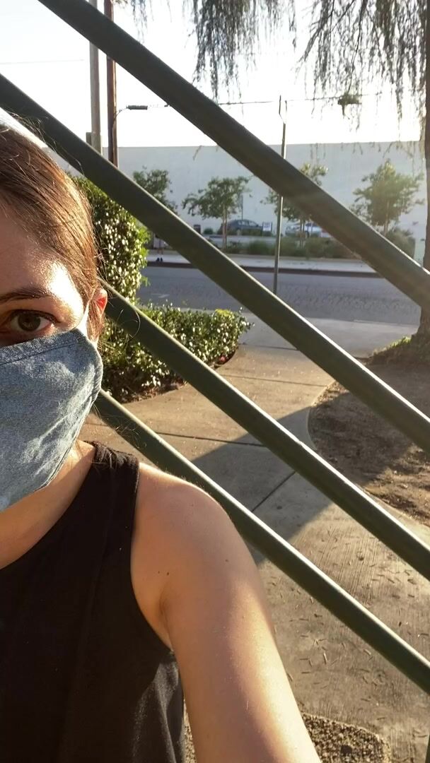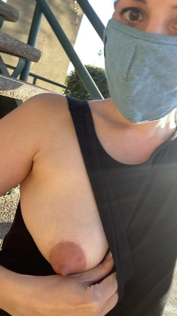 Risky Situations: Hoping to get some stares flashing on the stairs | Porn GIF Video