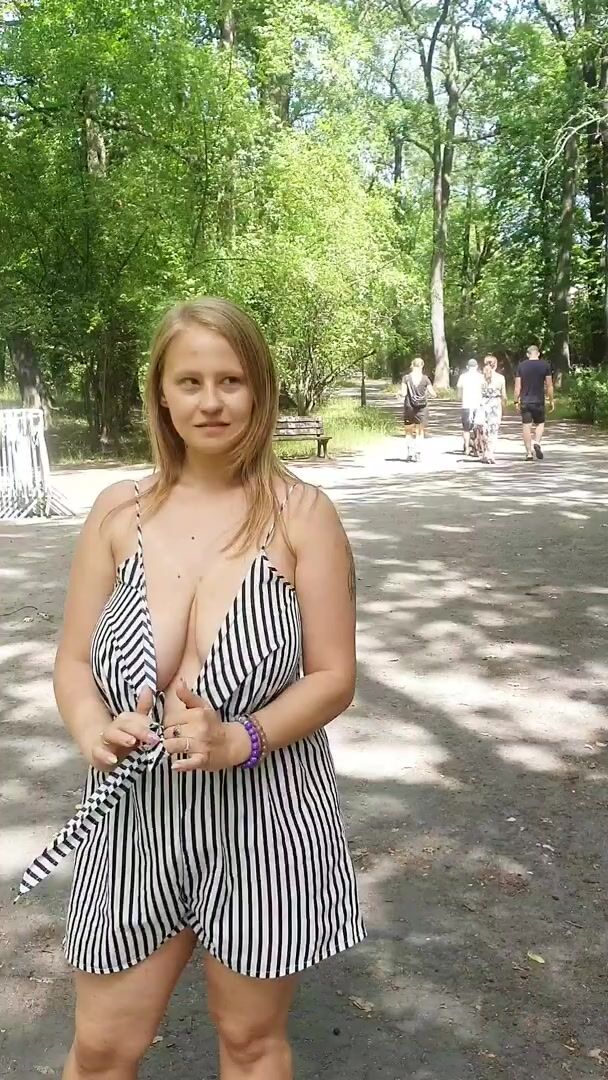 Public Nudity: It's still a challenge. Showing boobs in such a crowded park. Kisses | Porn GIF Video