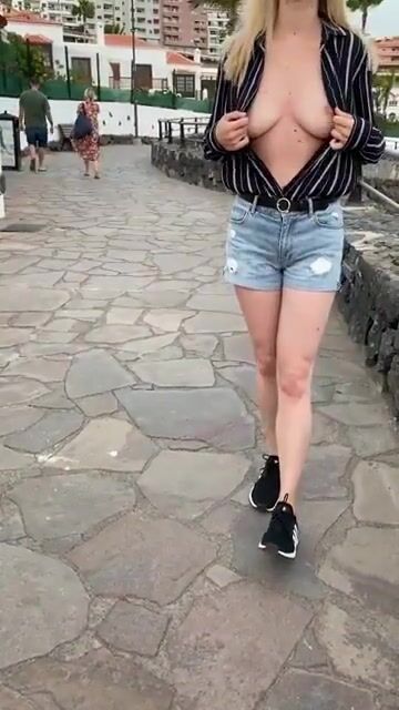 Getting Naked in Public: Secretly flashing behind this couple got my heart pounding! | Porn GIF Video
